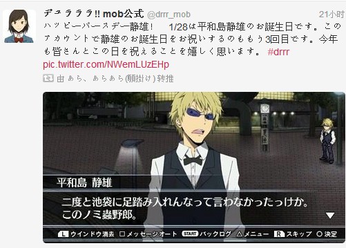 话说官方在临也的生日的时候又提到了小静…………今年小静生日又提到了临也……官方你还好吗!!